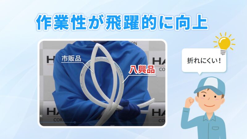 【動画配信】柔軟フッ素ホースシリーズ 3つのポイント 2021年5月24日 最終更新日時 : 2024年11月7日 吉田 「市販のフッ素チューブは硬くて使いにくい」「塩ビホースは薬品に弱い」 「ホースの洗浄に時間がかかる」このようなお困りごとを解決できる柔軟フッ素ホースのPR動画の配信を開始いたしました。是非ともご覧ください。